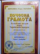 2017 Почесна грамота Верховної Ради України