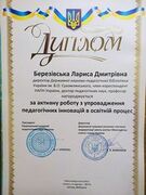 2021 Диплом НАПН України та ДНУ «Інститут модернізації змісту освіти» МОН України за активну роботу з упровадження педагогічних інновацій в освітній процес