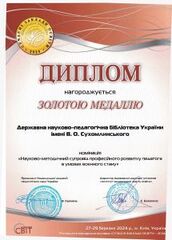 - Березівська Л. Д. Про наукову і науково-організаційну діяльність Державної науково-педагогічної бібліотеки України імені В. О. Сухомлинського за 2020–2024 рр. та перспективи її подальшого розвитку: за результатами наук. доп. на засід. Президії НАПН України, 19 верес. 2024 р. Вісник Національної академії педагогічних наук України. 2024. Т. 6, № 2. С. 1–8 (розд. паг.). DOI: https://doi.org/10.37472/v.naes.2024.6211.